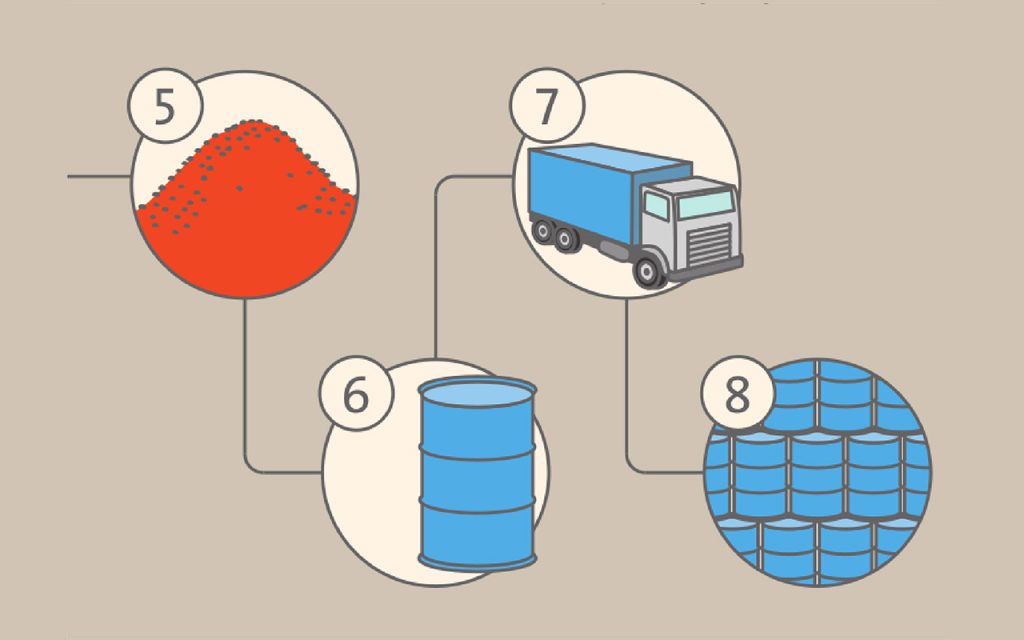 5. The mercury salts are then transported to manufacture end products in accordance with the allowed use under the Minamata Convention.
